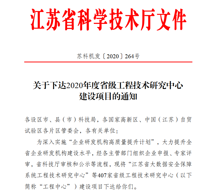江苏省科学技术厅下达了